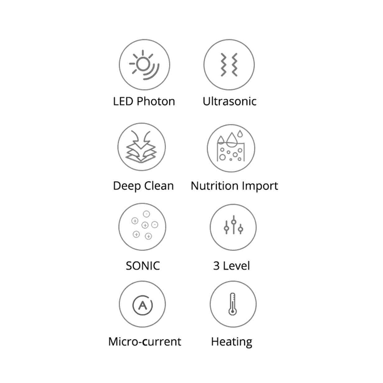 - Varmeterapi (45 °C)Åpner porene for å maksimere opptaket av dine favorittserum og -kremer med opptil 200 %.